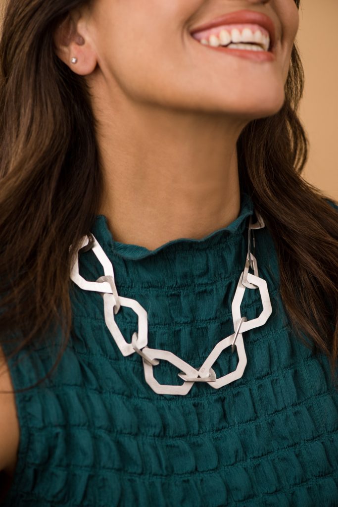 Ασημένιο κολιέ με χρυσόκολλα MRS TRAPEZE