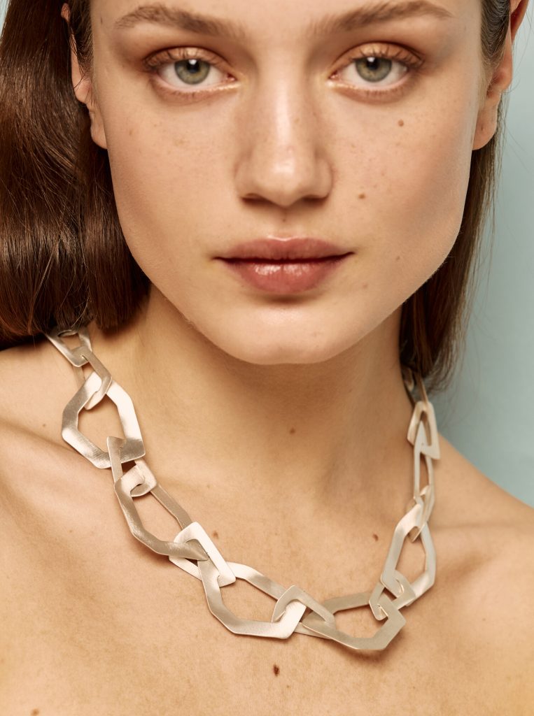 Ασημένιο επίχρυσο κολιέ TRAPEZE LAND